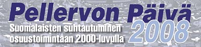 | 13.00-16.00 | Aatetta vai arkea, tunnetta vai taloutta? SUOMALAISTEN SUHTAUTUMINEN OSUUSTOIMINTAAN 2000-LUVULLA Suuren osuustoimintatutkimuksen julkistaminen Avaus Valtuuskunnan varapuheenjohtaja Tiina Linnainmaa, Pellervo Mitä korvien välissä tapahtuu? Suomalaisten arvo- ja asennemaailman muutos Tutkimusjohtaja Tiitta Tiilikainen, RISC Monitor, TNS Radar Research Consulting Oy Mikä sija osuustoiminnalla on koko kansan aatoksissa? Toimitusjohtaja Anne Kallinen, Suomen Gallup Elintarviketieto Oy Miten viljelijät suhtautuvat osuustoimintaan ja mikä on muutoksen suunta? Tutkija Petri Pethman, Suomen Gallup Elintarviketieto Oy Omistajuuden tunne voimatekijänä Professori Iiro Jussila, Lappeenrannan teknillinen yliopisto Suomen talouden haasteet Toimitusjohtaja Pasi Holm, Pellervon taloudellinen tutkimuslaitos PTT Kommentit, yleisökeskustelu ja kysymyksiä tutkijoille Päätössanat Hallituksen puheenjohtaja, maanviljelysneuvos Marcus H. Borgström, Pellervo |